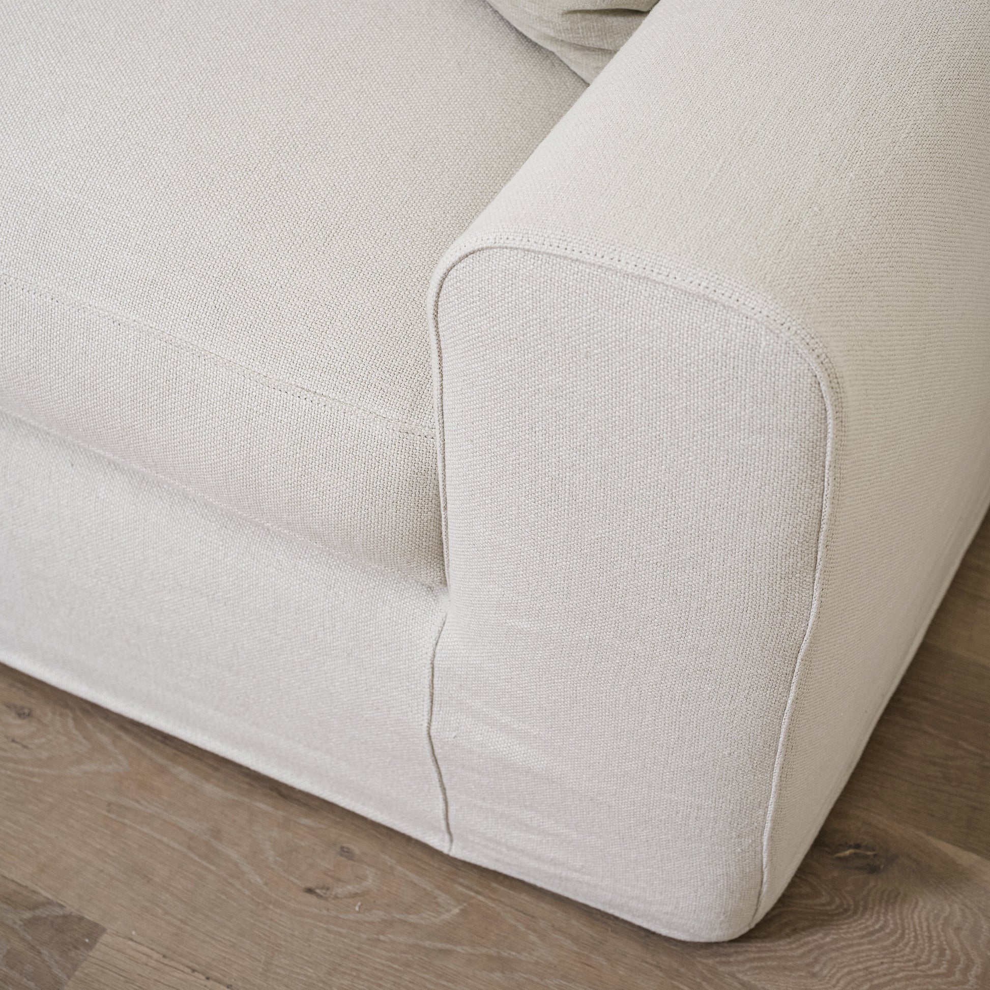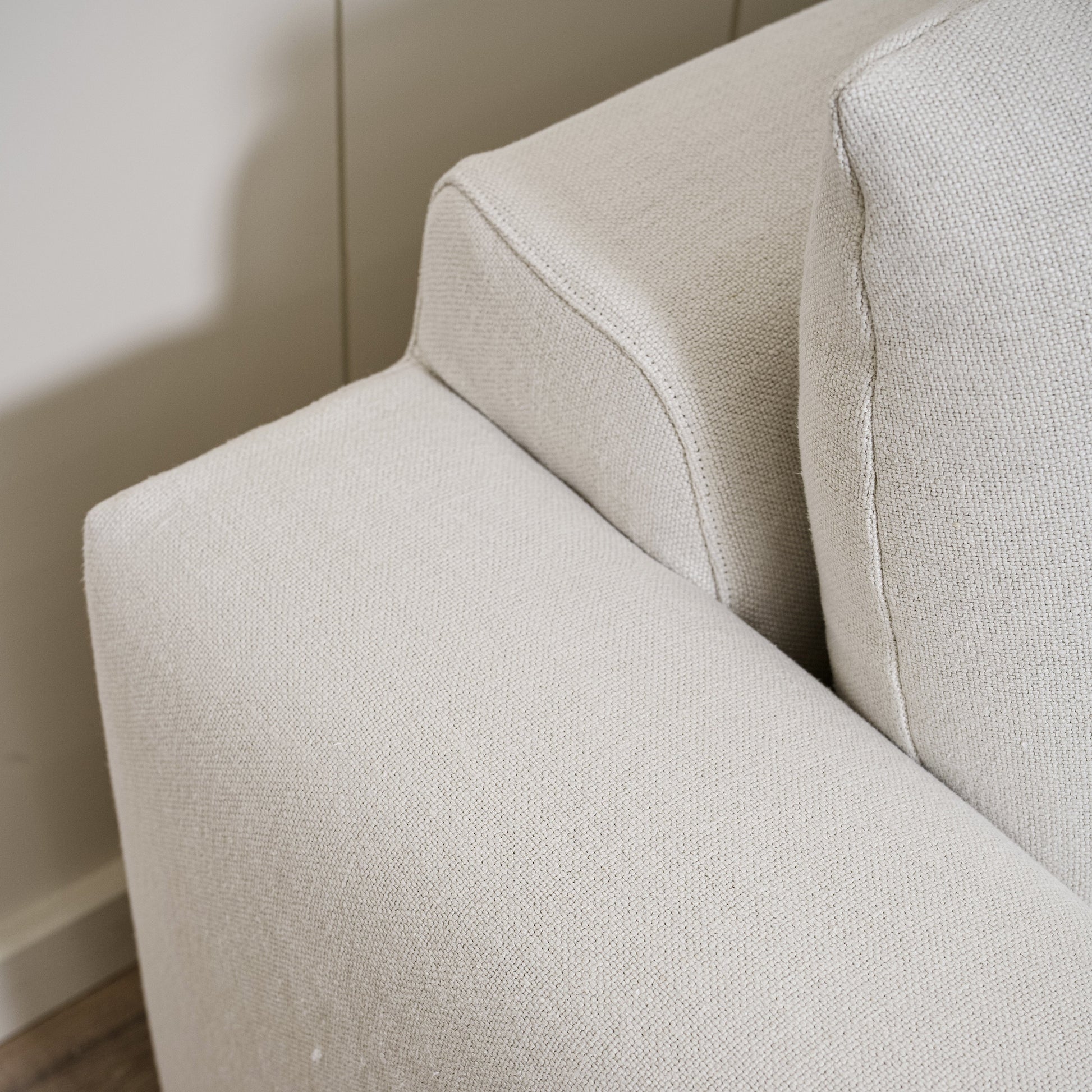 Variante 1 - Présentée en configuration à deux coussins de dossier, cadre recouvert de tissu naturel