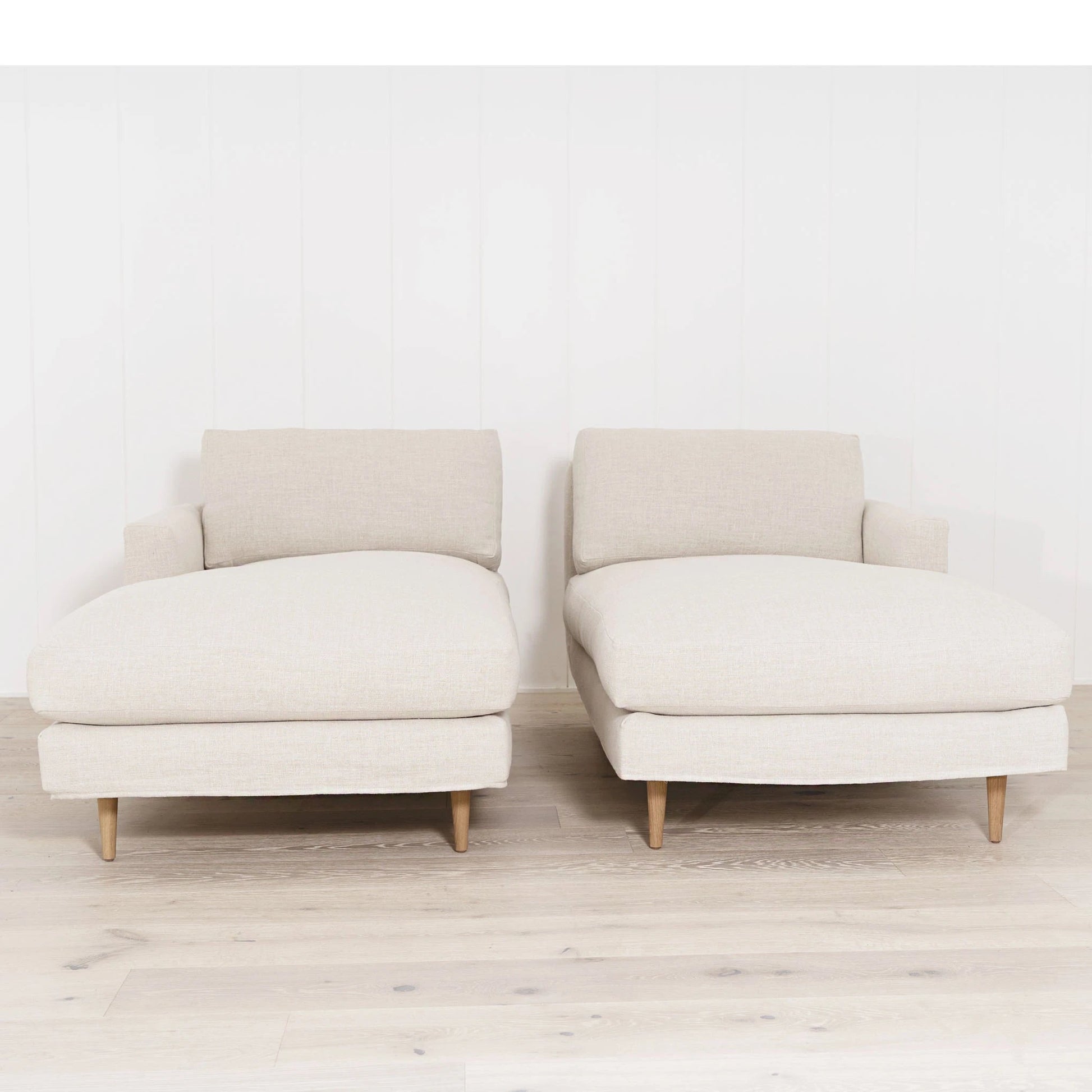 Variante en vedette : Revêtement en flocons d'avoine belge, pieds en chêne finis en naturel.