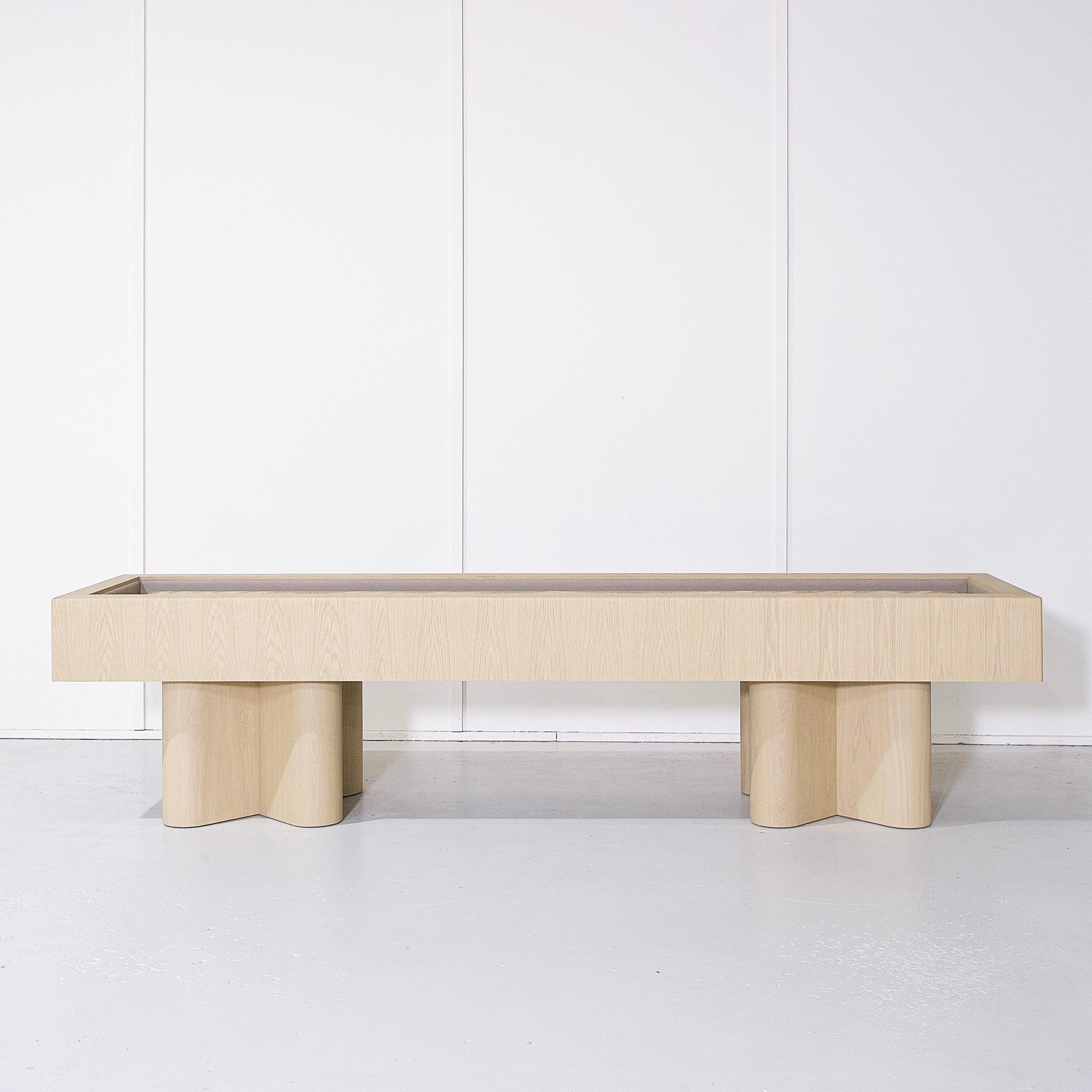 Planche : 129'L x 19,5'P x 2'H avec un espace de 3'D entre la planche et la bordure.