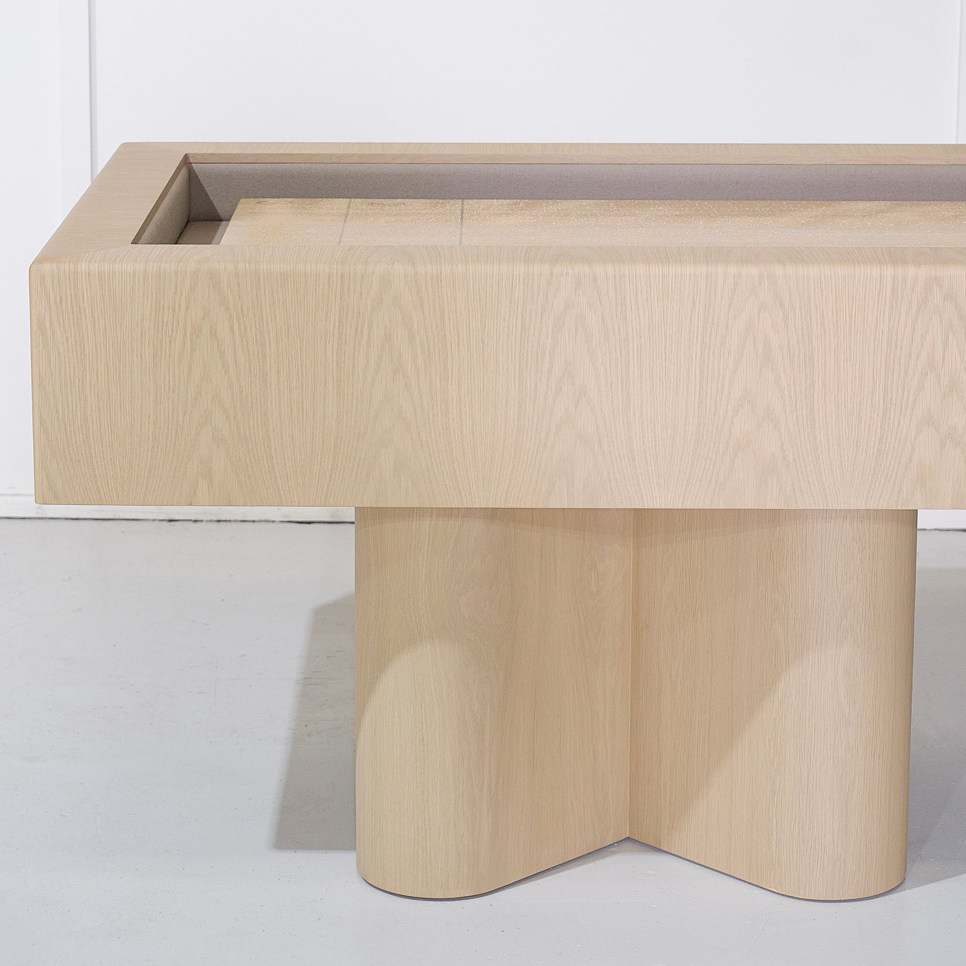 Espace entre deux pieds : 61'L / 22'H du sol jusqu'au dessous du plateau de la table.