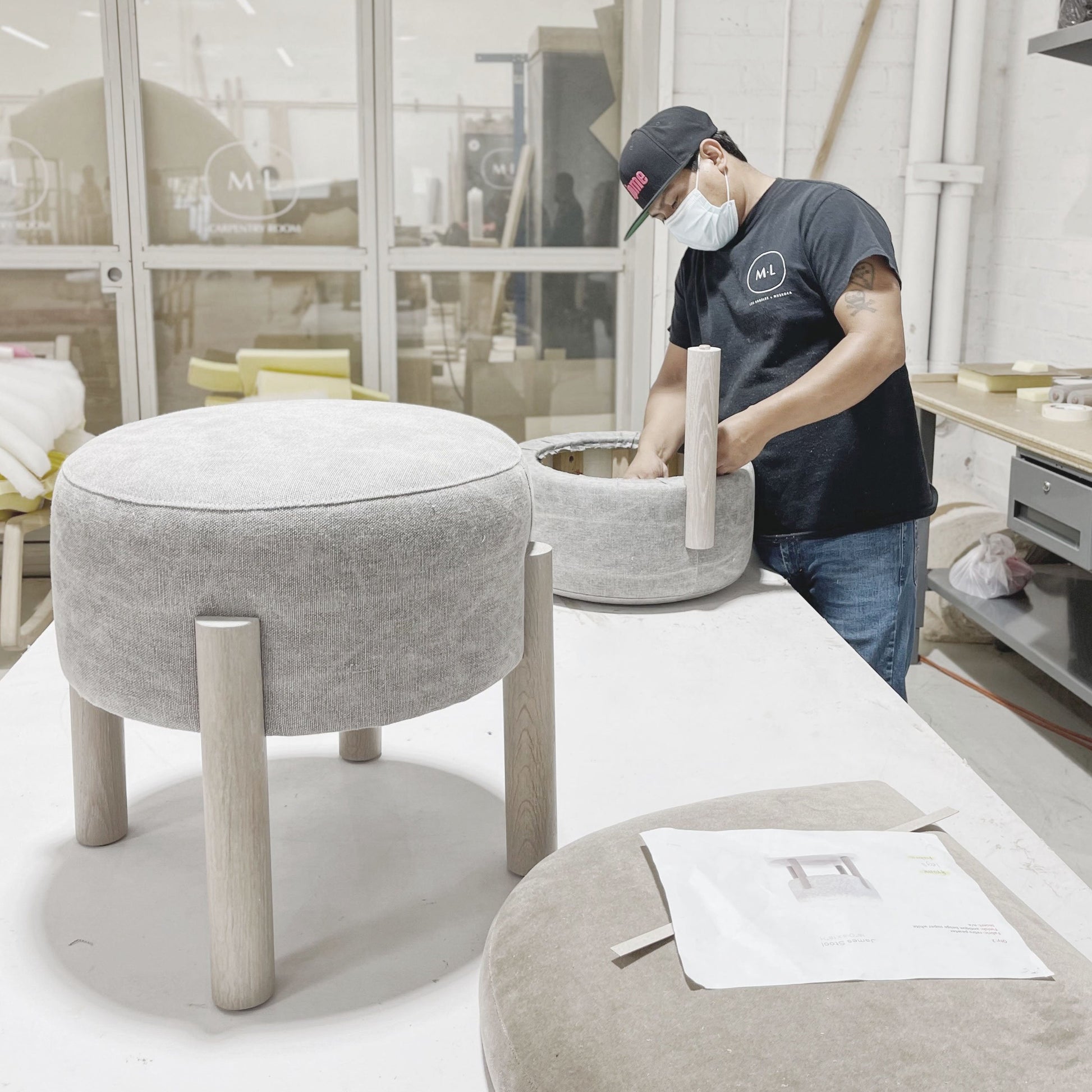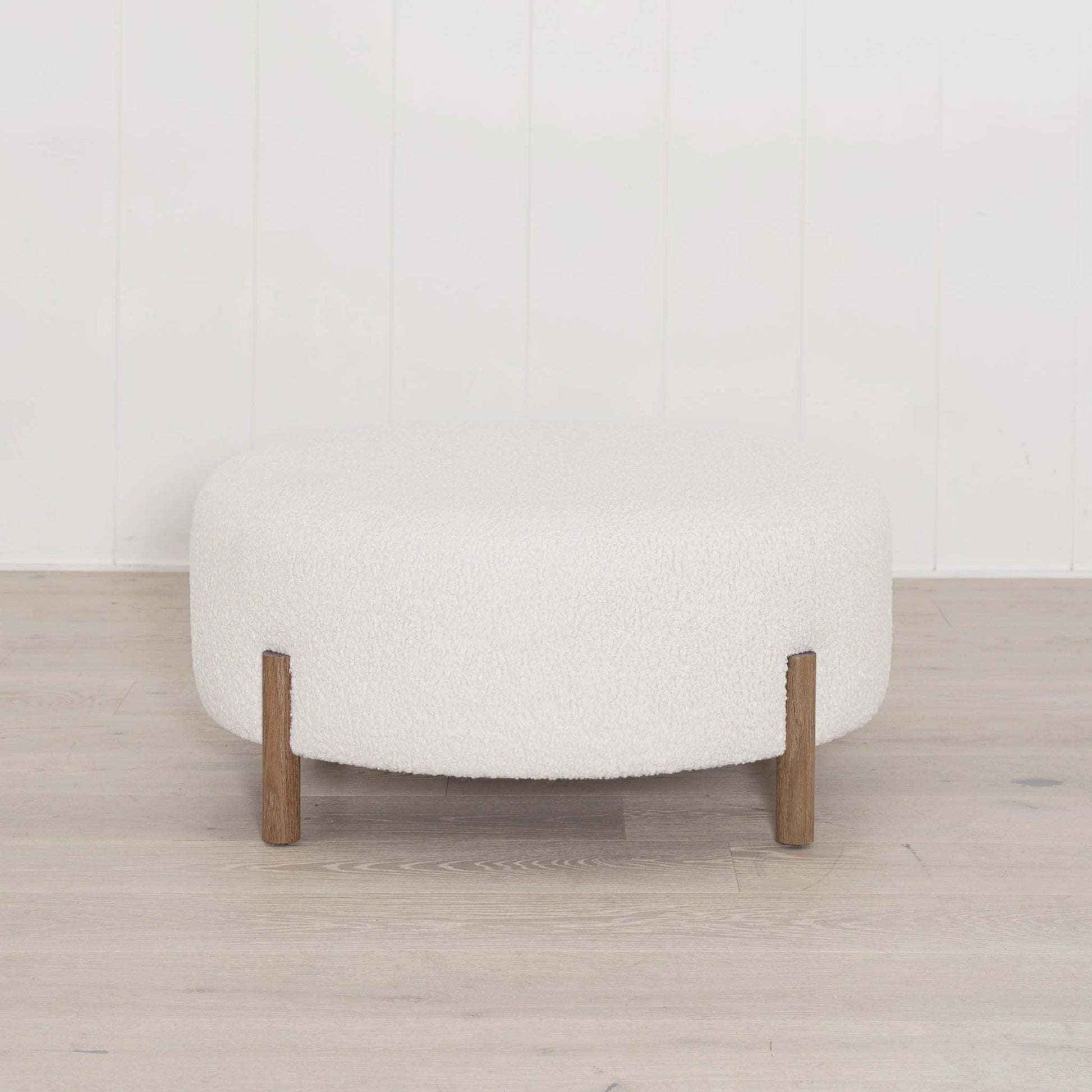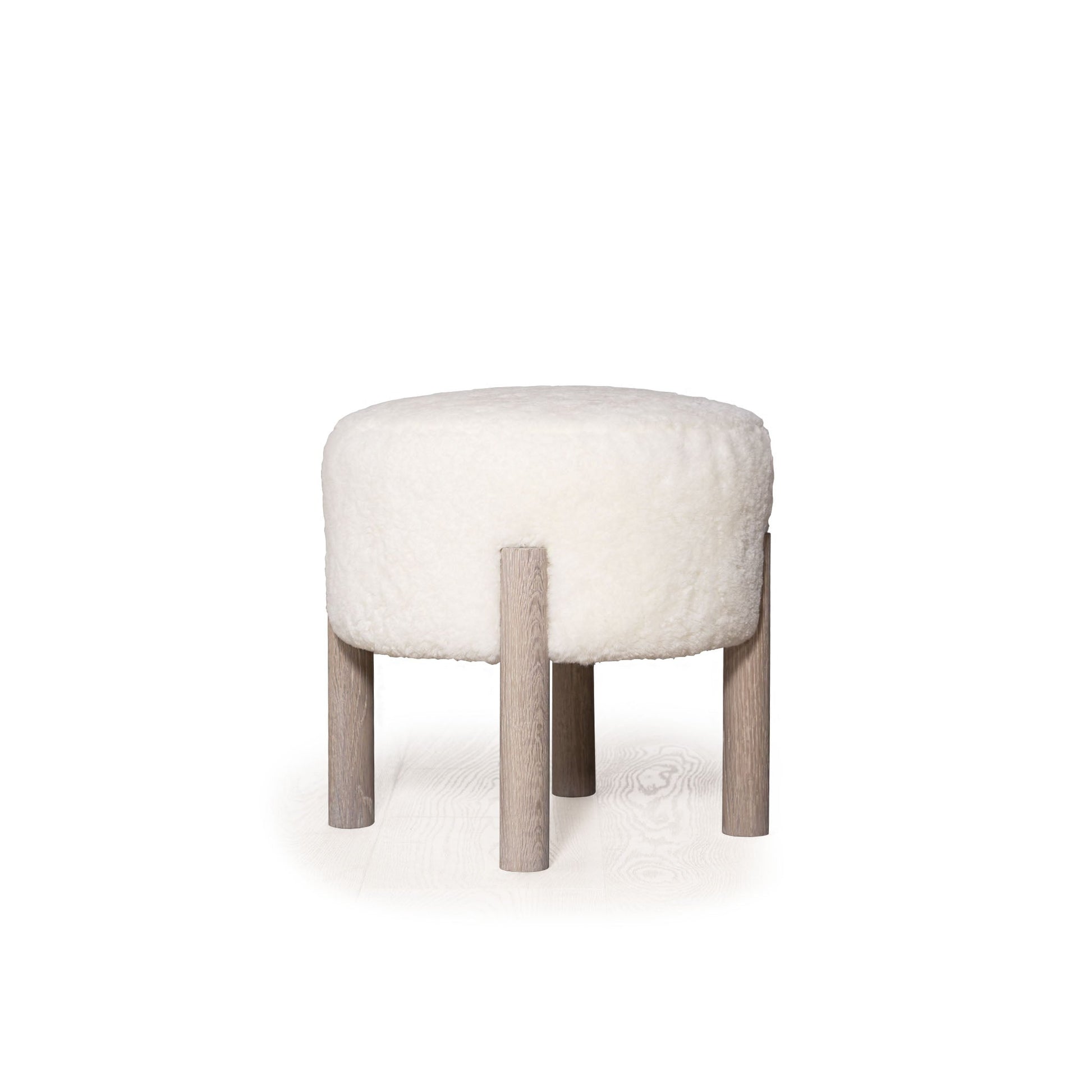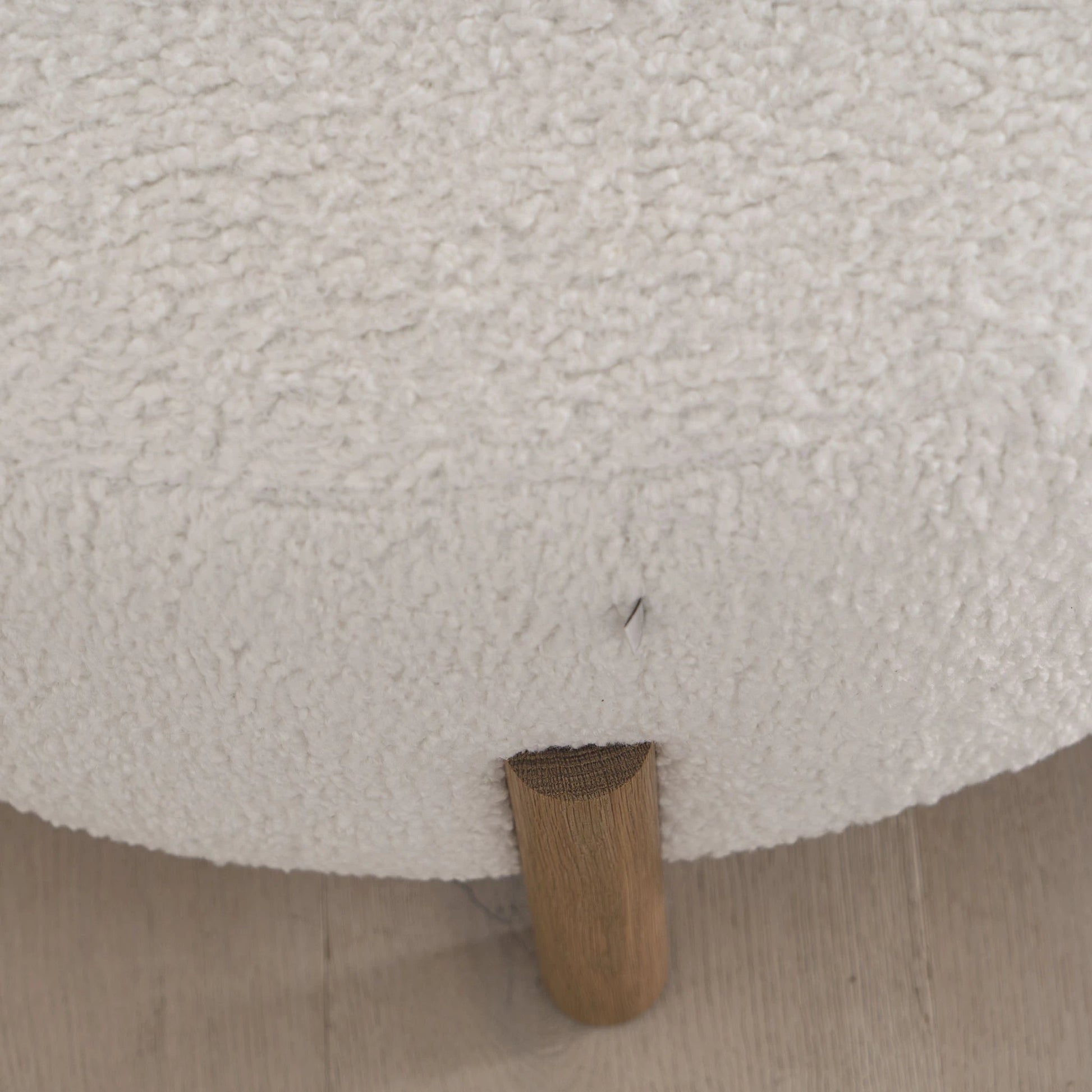Variante(s) en vedette : Présenté en peau lainée ivoire, chêne fini en sable