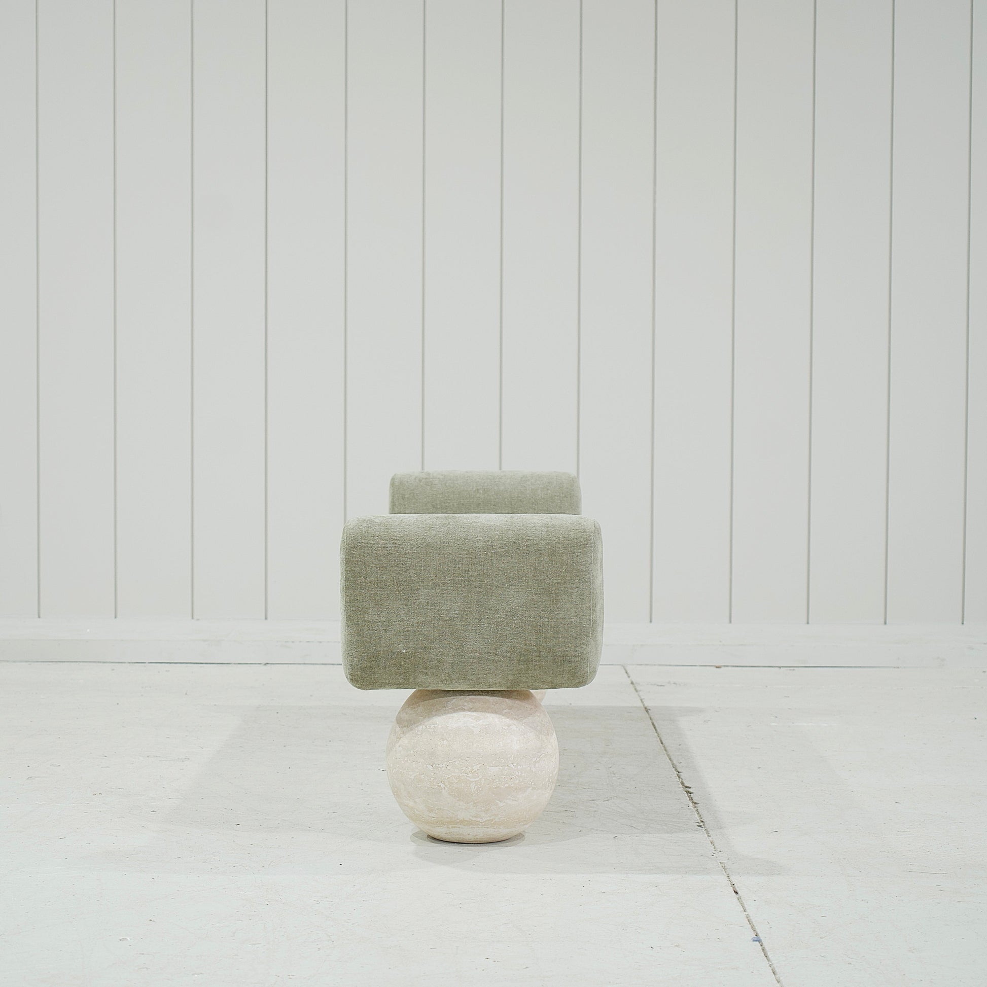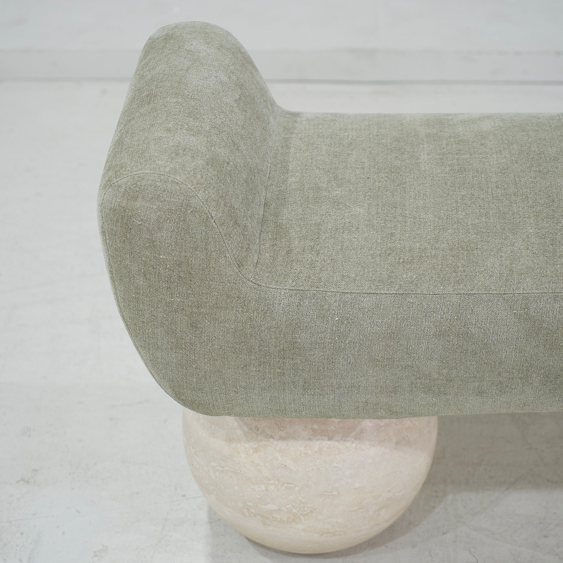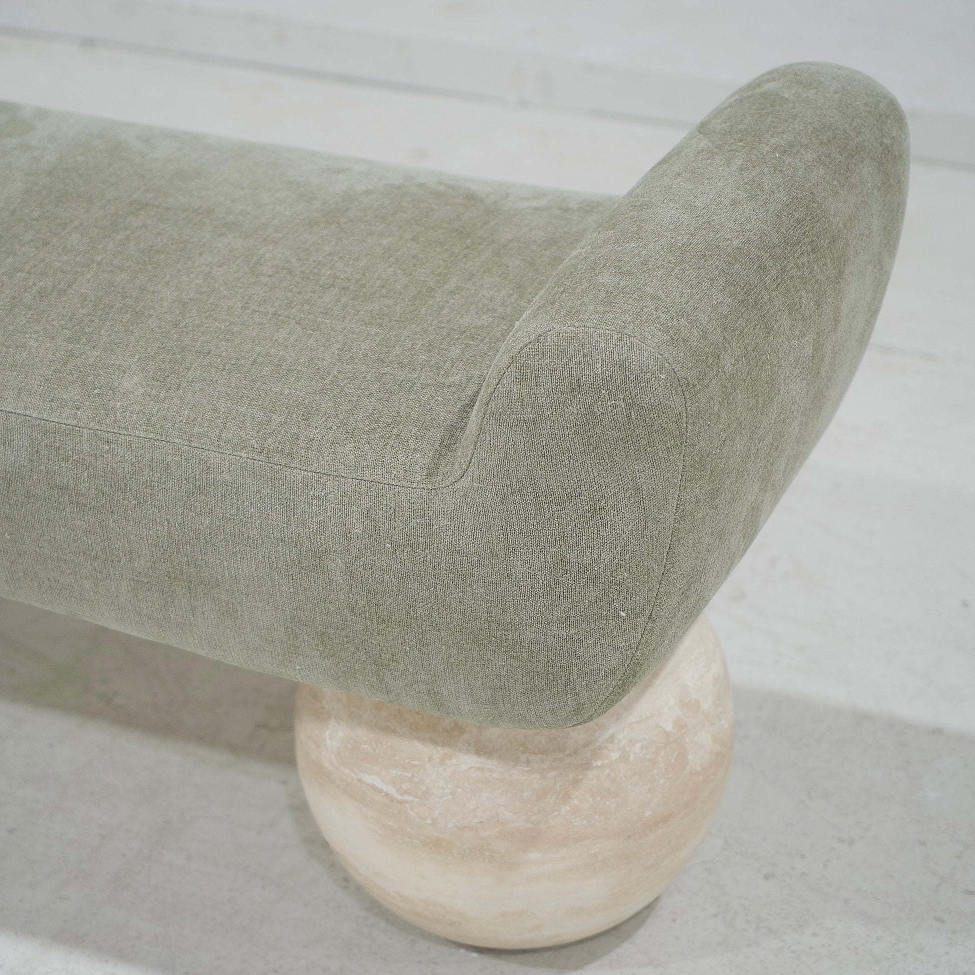 Base : Pieds boule en travertin beige.