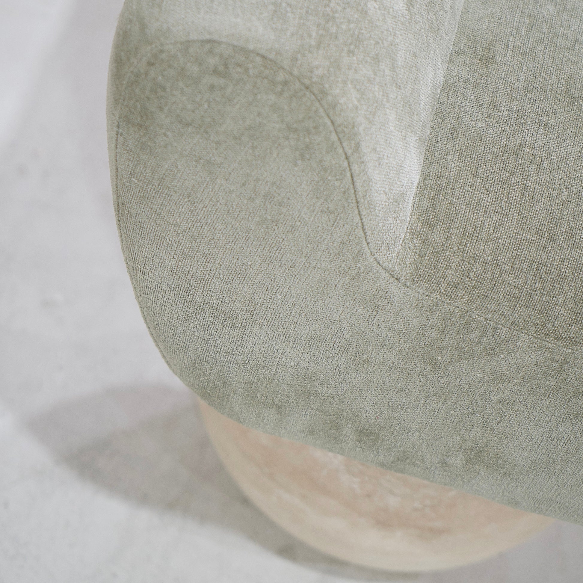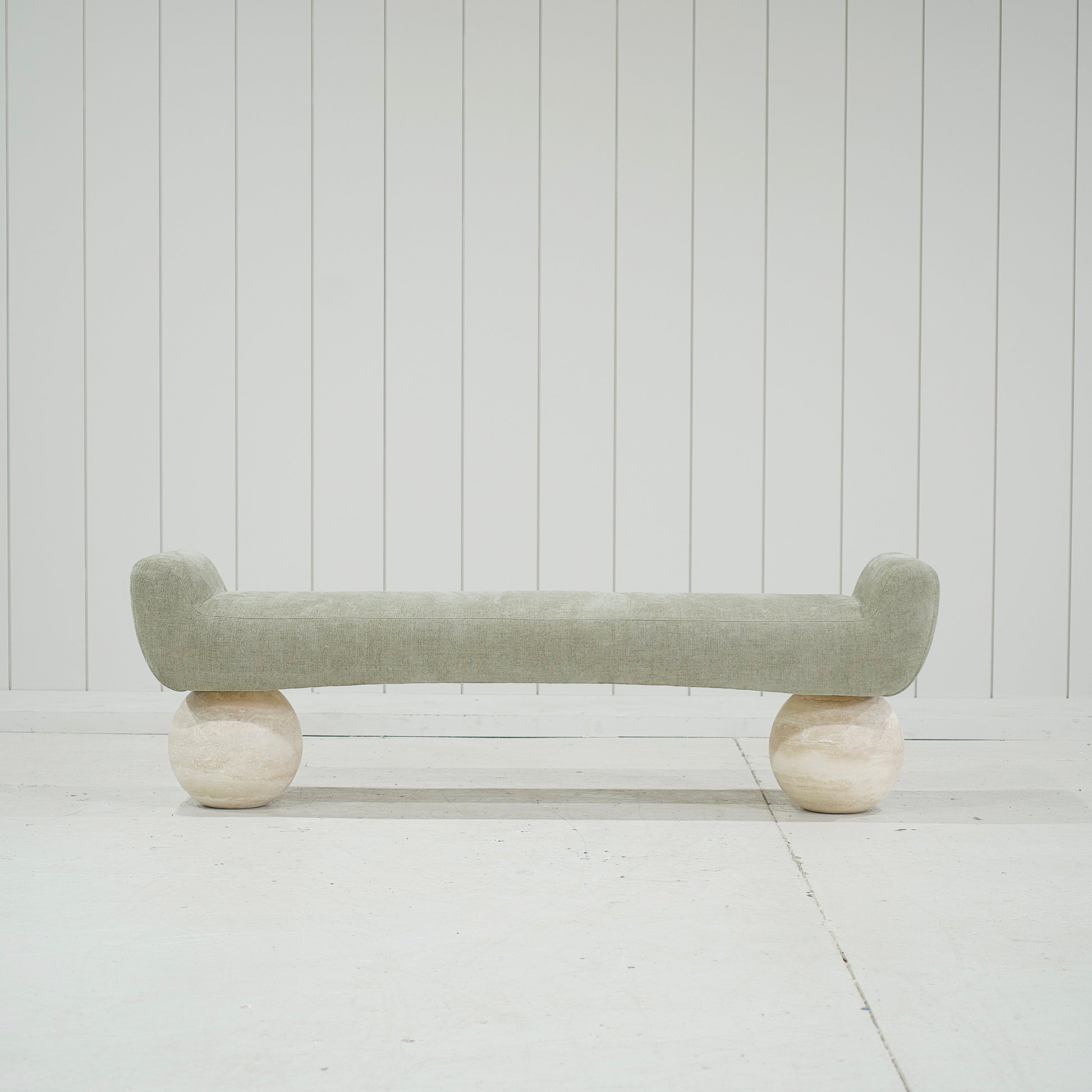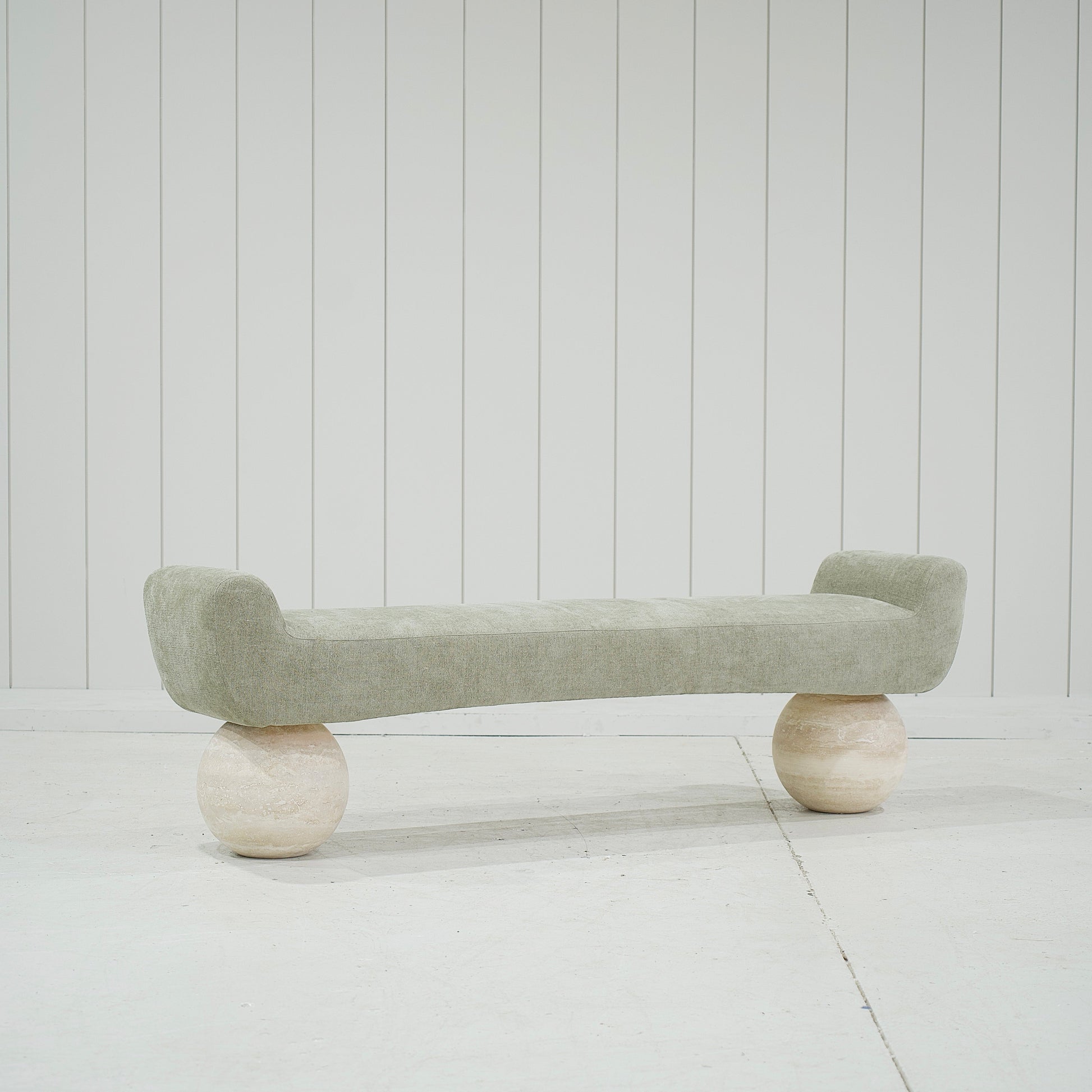 Base : Pieds boule en travertin beige.